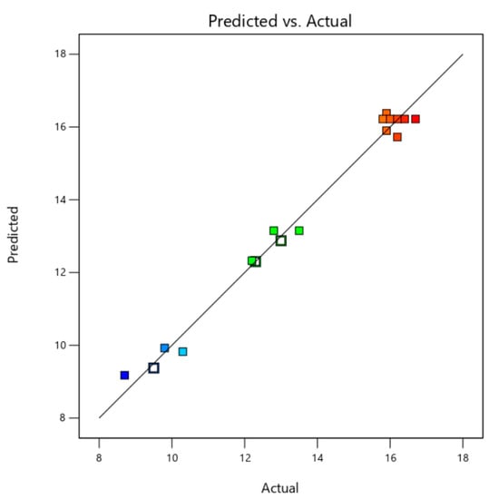 The above important parameters proved the suitability of the model. In addition, the predicted value of the model and the actual value of the experiment were fitted almost in a straight line, which also certified that the second-order polynomial regression model was consistent with the experimental results (Figure 2). Therefore, the models in the experiment can identify the operating conditions for selective extraction of Fc.
