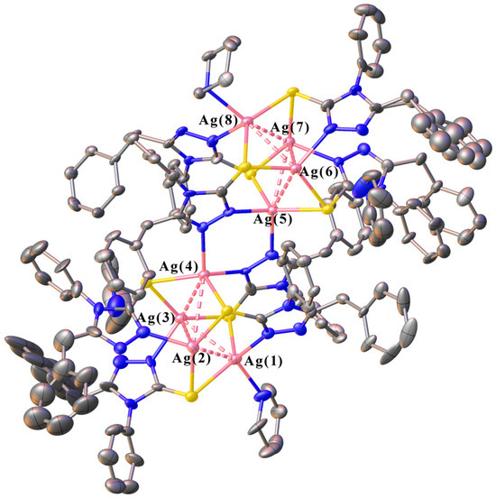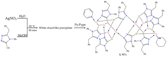 Yambulatov, D.S.; Lutsenko, I.A.; Baravikov, D.E.; Dolgushin, F.M.; Astaf’eva, T.V.; Bekker, O.B.; Nersisyan, L.G.; Samvelyan, M.A.; Ghochikyan, T.V.; Kiskin, M.A.; et al. Synthesis, Structure, Biological Activity, and Luminescence Properties of a “Butterfly”-Type Silver Cluster with 3-Benzyl-4-phenyl-1,2,4-triazol-5-thiol. Molecules 2024, 29, 105. https://doi.org/10.3390/molecules29010105