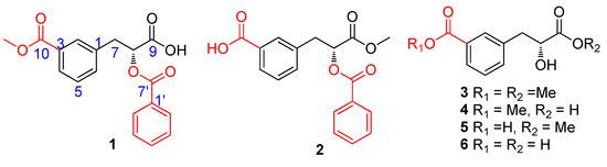 In addition, the known carboxyl-substituted phenylpropionic acid 6 was isolated and identified as cerberic acid B [13] by comparing the experimental spectral data with the reported spectra data in the literature.