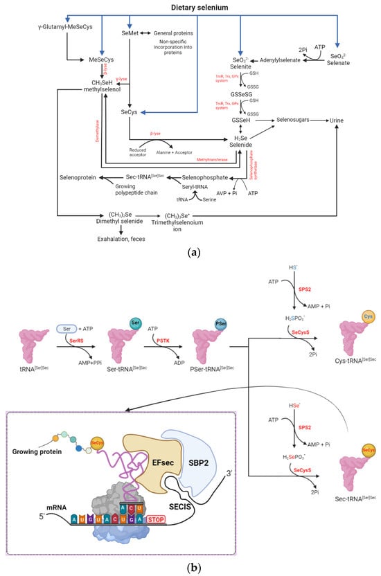 - Minich, W.B. Selenium metabolism and biosynthesis of selenoproteins in the human body. Biochemistry 2022, 87, S168–S177. [Google Scholar] [CrossRef] [PubMed]