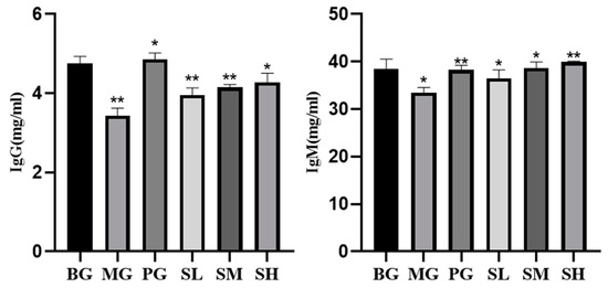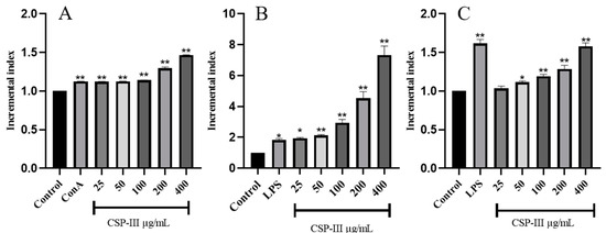 2.5.3. Impact of CSP-III on the IgG and IgM Serum Levels in Mice