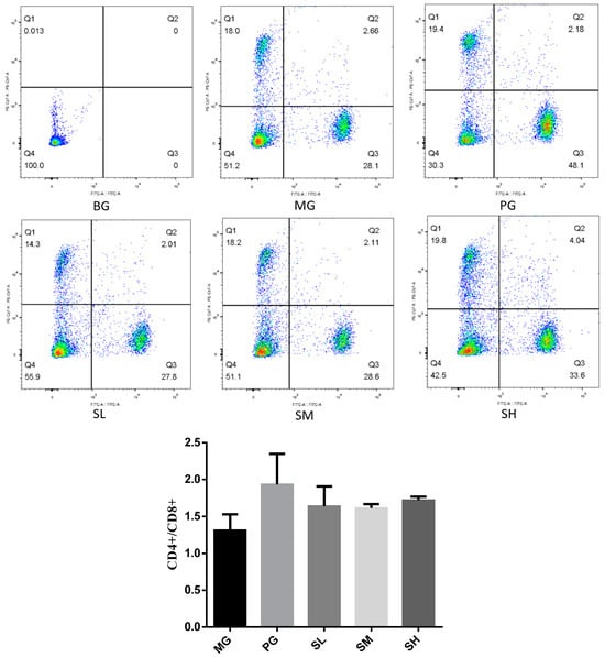 4.8.3. Identification of the T-Lymphocyte Subset by Flow Cytometry
