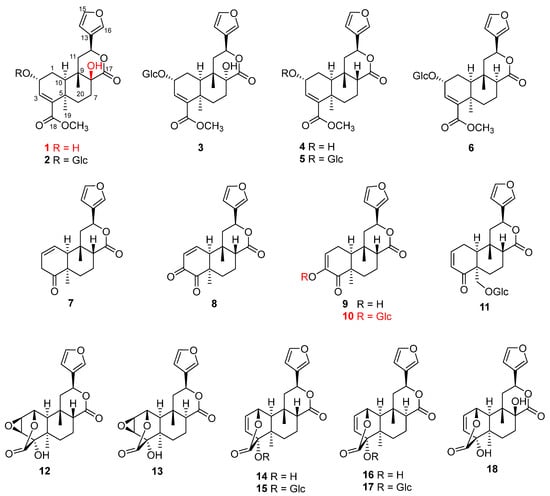 - Li, R.; Morris-Natschke, S.L.; Lee, K.H. Clerodane Diterpenes: Sources, Structures, and Biological Activities. Nat. Prod. Rep. 2016, 33, 1166–1226. [Google Scholar] [CrossRef] [PubMed]