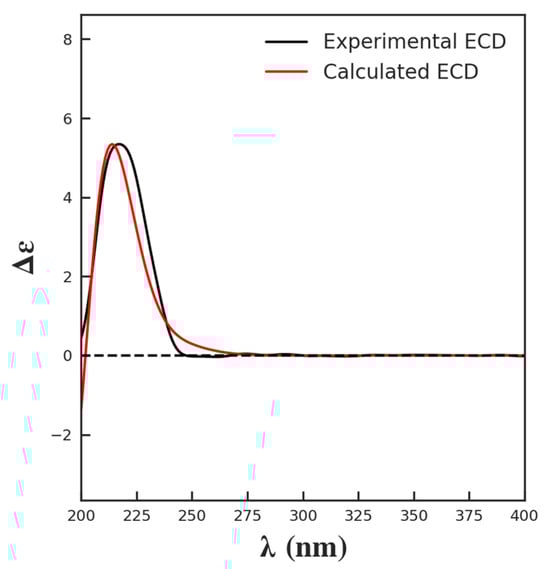 Experimental and calculated ECD of compound 1.