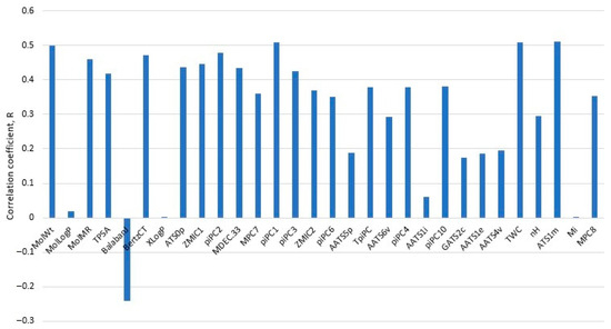 Still, Ref. [28] explained in depth significant indices, and it was right about the advantage of nonlinear methodologies against linear methodologies. Linear methodologies usually underperform in water solubility predictions with a high RMSE >1.15 [12,25], while the average CV statistics of six nonlinear methods on an 805-sized compound set of the Water-wide set of Ref. [12] was RMSECV = 0.897 Log(S) with a span of 0.85–0.95 Log(S). For the 95-sized test set, the span was 071–0.85 [12], with an average of 0.823 Log(S) [12]. That is why we did not consider linear methods. An additional reason is that XGB can do its own variable selection using its importance metric on evaluated variables, by selecting only the top important variables, so that PLS regression coefficients are unnecessary. On the contrary, Ref. [28] needed a multilinear regression for the variable selection to obtain an improved performance with an ANN, and this is an advantage of an XGB methodology such as FSTI-XGB. Still, in QSPR, linear methodologies can have a solid performance, such as the RMSE 0.84–0.873 Log(S) obtained in Ref. [50] for 3664 compounds, similarly to Ref. [36], which involved an intrinsic solubility prediction with QSPR on fewer sample data sets.