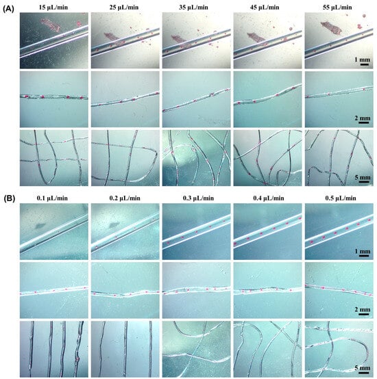 2.3. Effect of Flow Rate on Morphology of Microsphere Fibers