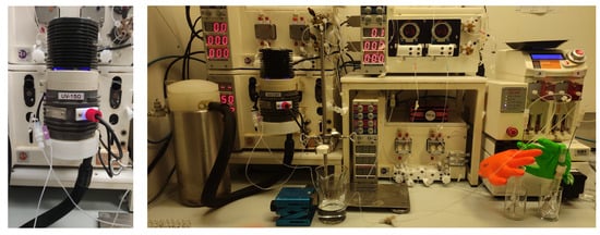 Reaction mixtures dissolved in MeOH from both batch and flow experiments were analyzed by HPLC (1100 Series, Agilent, Santa Clara, CA, USA) with DAD detector and Waters XBridge C18 column (3.5 µm, 4.6 × 150 mm). The mobile phase consisted of solvent A (acetonitrile) and solvent B (0.2% vol. H3PO4 in water) with gradient elution from 90 to 10% B in 15 min, followed by keeping 10% B for 3 min, which was then replaced by 90% B kept for the next 2 min. The flow rate was 1 mL/min with a column temperature of 35 °C and UV detection at 320 nm. Mass spectra analyses were carried out on an HPLC (1290 Infinity II, Agilent Technologies, Santa Clara, CA, USA)—MS (6120 Quadrupole LC/MS, Agilent Technologies) with DAD detector and ACQUITY UPLC BEH C18 Column (1.7 μm, 2.1 × 50 mm). The flow rate was 0.900 mL/min with a column temperature of 40 °C. The mobile phase consisted of solvent A (0.1% formic acid in H2O) and solvent B (0.1% formic acid in acetonitrile). The composition of the mobile phase varied in the following way: