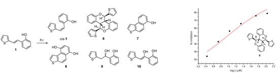 This fact provided justification for an even more detailed examination of the photochemical reactivity of compound 1 (but also of other analogs 2–5, Figure 1) and finding reaction conditions under which either the corresponding cis-isomer of the starting compound or one of the photoproducts with potential biological activity can be selectively obtained.