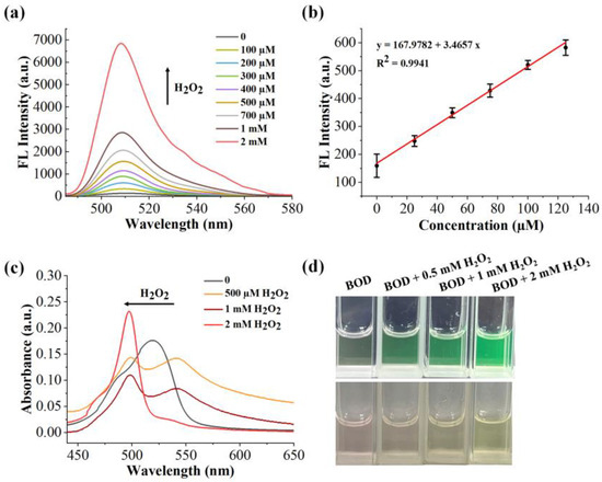 - Li, B.; Chen, J.; Xiong, Y.; Yang, X.; Zhao, C.; Sun, J. Development of turn-on fluorescent probes for the detection of H2O2 vapor with high selectivity and sensitivity. Sens. Actuators B Chem. 2018, 268, 475–484. [Google Scholar] [CrossRef]