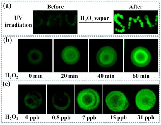 - Xu, M.; Han, J.M.; Wang, C.; Yang, X.; Pei, J.; Zang, L. Fluorescence ratiometric sensor for trace vapor detection of hydrogen peroxide. ACS Appl. Mater. Interfaces 2014, 6, 8708–8714. [Google Scholar] [CrossRef] [PubMed]