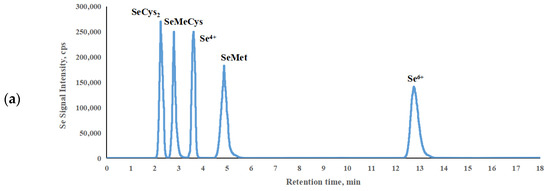 - Bodnar, M.; Konieczka, P. Evaluation of candidate reference material obtained from selenium-enriched sprouts for the purpose of selenium speciation analysis. LWT 2016, 70, 286–295. [Google Scholar] [CrossRef]