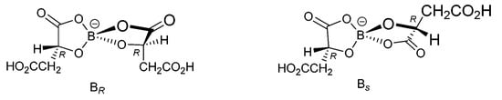 - Rebstöcková, M.; Bartušek, M. Reactions of boric acid with oxalic, glycolic and tartaric acids. Collect. Czechoslov. Chem. Commun. 1977, 42, 627–636. [Google Scholar] [CrossRef]