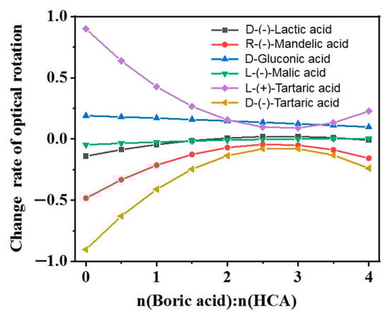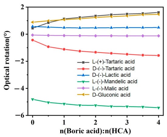 2.2. Comparison of the Effects of Protonic Acid and BA on the Optical Rotation of Chiral HCAs