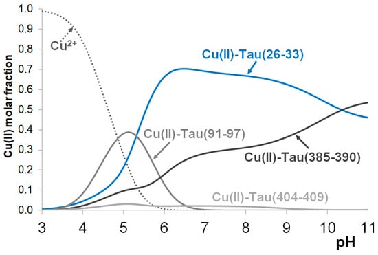 In the Introduction, it has already been mentioned that, among the previously studied tau fragments, the heptapeptide tau(26–33) involving a His32 residue was the most effective copper(II)-binding ligand.