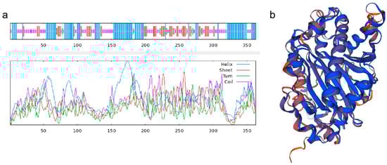 TbF3H protein sequence secondary structures (a) and tertiary structure prediction (b).
