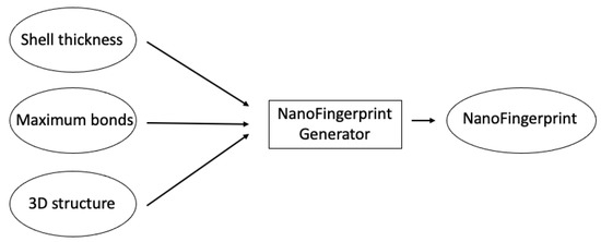 - NanoFingerprintThis computes a NanoFingerprint given a metal oxide nanoparticle described in a .XYZ file. Two parameters are required: shell thickness and the maximum number of bonds per atom, which are the first two values of the NanoFingerprint. The website returns a .txt file that contains the NanoFingerprint. Nanocompounds in an XYZ format can be structures that have been optimised or not. There are some websites that provide these structures. For instance, the crystallographic tool for the construction of nanoparticles (https://nanocrystal.vi-seem.eu/ (accessed on 7 May 2024)) reported in [7].