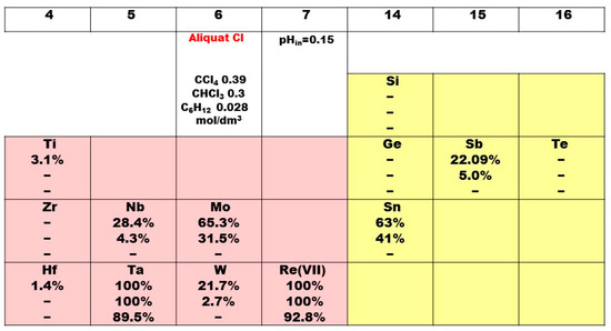 2.2. Solvent Extraction and Selectivity across the Chemical Elements in the Periodic Table Applying Aliquat 336