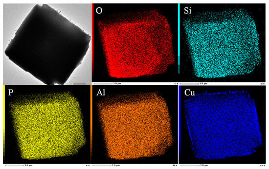 TEM images of 0.075Cu/SAPO-34 with corresponding element mapping analyses.
