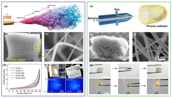 - Wang, F.; Dou, L.; Dai, J.; Li, Y.; Huang, L.; Si, Y.; Yu, J.; Ding, B. In situ synthesis of biomimetic silica nanofibrous aerogels with temperature-invariant superelasticity over one million compressions. Angew. Chem. Int. Ed. 2020, 132, 8285–8292. [Google Scholar] [CrossRef] [PubMed]