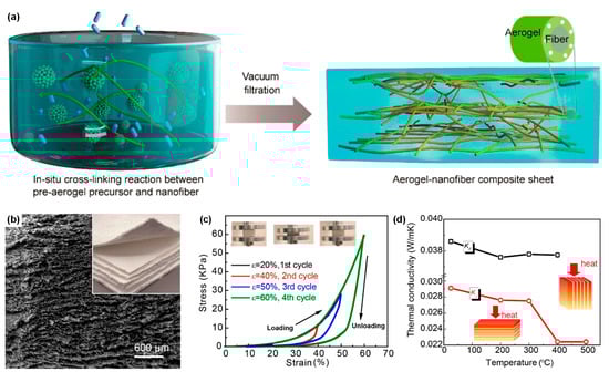 - An, Z.; Hou, X.; Zhou, P.; Zhang, R.; Fang, D. A novel flexible, layered, recoverable SiO2 fiber skeleton and aerogel composites material prepared by papermaking process. Ceram. Int. 2021, 47, 12963–12969. [Google Scholar] [CrossRef]