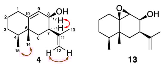 - Saito, Y.; Ichihara, M.; Okamoto, Y.; Gong, X.; Kuroda, C.; Tori, M. Four New Eremophilane-Type Alcohols from Cremanthodium Helianthus Collected in China. Nat. Prod. Commun. 2012, 7, 831–833. [Google Scholar] [CrossRef]