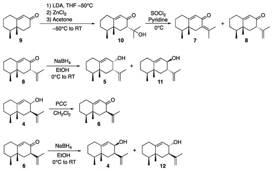 3.6. Syntheses of Alcohol 10 and 7-epi-Neopetasane 8