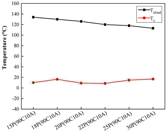 The melting points (Tm) and the crystallization temperatures (Tc) of the P(AN-MA)/CPL/AC mixtures were measured using a differential scanning calorimeter (Model DSC200F3, Netzsch, Selb, Germany). A 5~8 mg sample was put into an aluminum pan, which was heated from 25 °C to 140 °C at 20 °C/min and maintained at 140 °C for 2 min to eliminate the thermal history, cooled from 140 °C to 0 °C at 10 °C/min, and then reheated to 140 °C at 10 °C/min under the protection of a nitrogen atmosphere.
