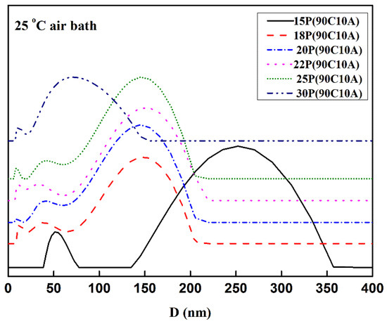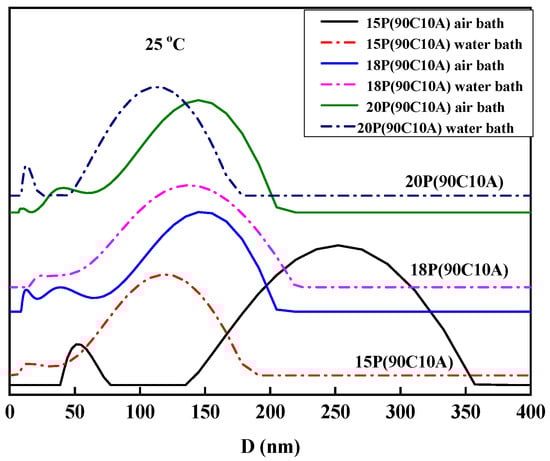 Figure 4. Specifically, the membrane prepared from 15P(90A10C) in a 25 °C air bath exhibited the highest water flux (8107 L/m