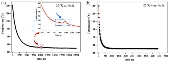 28], so we adopted the manmade device to measure actual P(AN-MA) solutions’ cooling rate in a 25 °C air bath or water bath. It will be better to reflect the temperature change in relation to the cooling time and understand the relationship between the cooling rate and membrane morphologies.