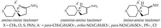 According to NMR spectral data and X-ray diffraction data, 2-aminospiropyrazolinium systems exist only in the form of one amino-imine tautomer; no spectral signs of other possible tautomers have been recorded: enamine-amine and imino-amine (Figure 2).
