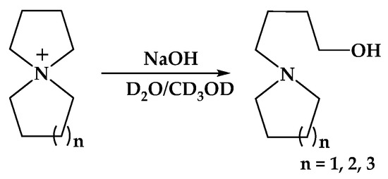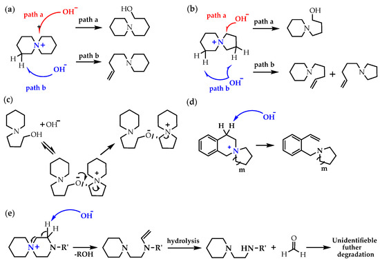 - You, W.; Hugar, K.M.; Selhorst, R.C.; Treichel, M.; Peltier, C.R.; Noonan, K.J.T.; Coates, G.W. Degradation of organic cations under alkaline conditions. J. Org. Chem. 2020, 86, 254–263. [Google Scholar] [CrossRef] [PubMed]