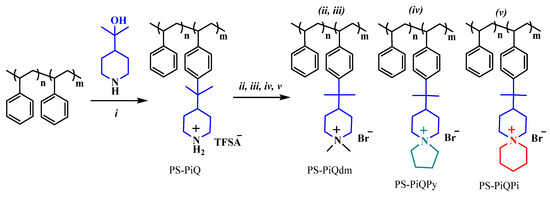 - Olsson, J.S.; Pham, T.H.; Jannasch, P. Functionalizing Polystyrene with N-Alicyclic Piperidine-Based Cations via Friedel-Crafts Alkylation for Highly Alkali-Stable Anion-Exchange Membranes. Macromolecules 2020, 53, 4722–4732. [Google Scholar] [CrossRef] [PubMed]