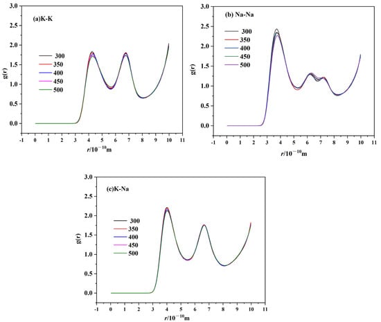 RDF of cation–cation ion pairs of TMS-2 ((a) K-K; (b) Na-Na; (c) K-Na).