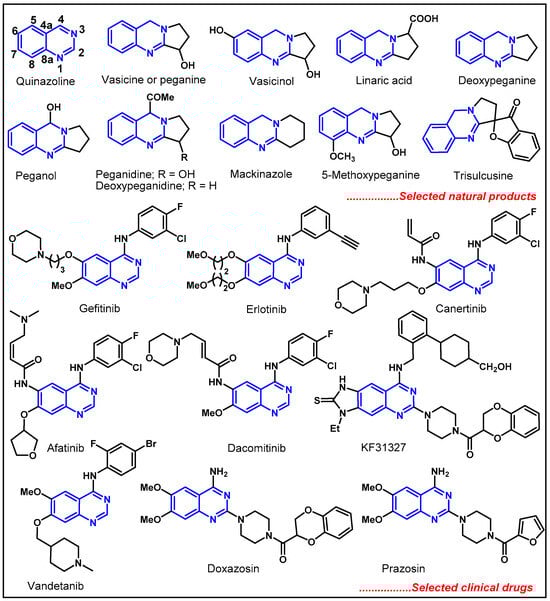 - Theivendren, P.; Palanirajan, V. Quinazoline Marketed drugs–A review. Res. Pharm. 2011, 1, 1–21. [Google Scholar]