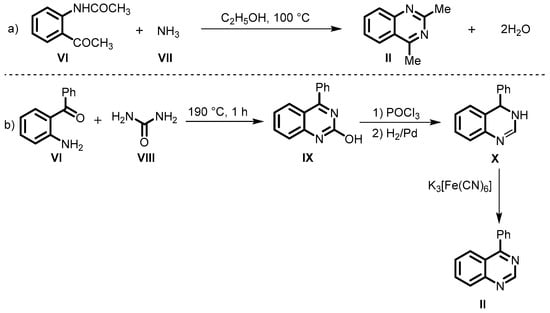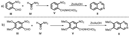 - Gabriel, S. Ueber das Chinazolin. Eur. J. Inorg. Chem. 1903, 36, 800–813. [Google Scholar] [CrossRef]