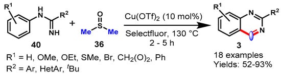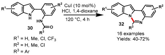 - Guo, X.-X.; Gu, D.-W.; Wu, Z.; Zhang, W. Copper-Catalyzed C–H Functionalization Reactions: Efficient Synthesis of Heterocycles. Chem. Rev. 2015, 115, 1622–1651. [Google Scholar] [CrossRef] [PubMed]