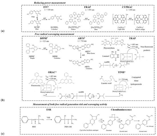 - Huang, D.; Ou, B.; Prior, R.L. The chemistry behind antioxidant capacity assays. J. Agric. Food Chem. 2005, 53, 1841–1856. [Google Scholar] [CrossRef]
