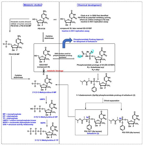 - Sofia, M.J.; Bao, D.; Chang, W.; Du, J.; Nagarathnam, D.; Rachakonda, S.; Reddy, P.G.; Ross, B.S.; Wang, P.; Zhang, H.R.; et al. Discovery of a beta-d-2′-deoxy-2′-alpha-fluoro-2′-beta-C-methyluridine nucleotide prodrug (PSI-7977) for the treatment of hepatitis C virus. J. Med. Chem. 2010, 53, 7202–7218. [Google Scholar] [CrossRef]