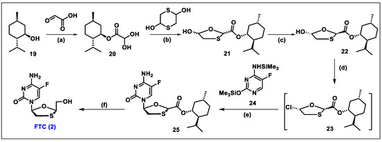 - Liotta, D.C.; Painter, G.R. Discovery and Development of the Anti-Human Immunodeficiency Virus Drug, Emtricitabine (Emtriva, FTC). Acc. Chem. Res. 2016, 49, 2091–2098. [Google Scholar] [CrossRef]