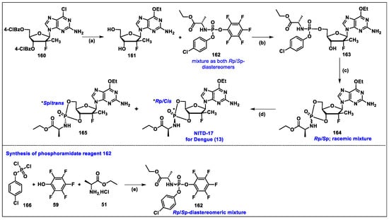 - Slusarczyk, M.; Serpi, M.; Pertusati, F. Phosphoramidates and phosphonamidates (ProTides) with antiviral activity. Antivir. Chem. Chemother. 2018, 26, 2040206618775243. [Google Scholar] [CrossRef]