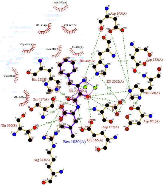 However, the catalytic pockets of carnosinase-2 bind bivalent manganese, whereas carnosinase-1 binds zinc [3,6,7,8,9,10,11,12]. Despite such a difference, the crystal structure of the two enzymes reveals similar interactions with the metal ions, as reported by the LIGPLOT diagrams shown in Figure 3.