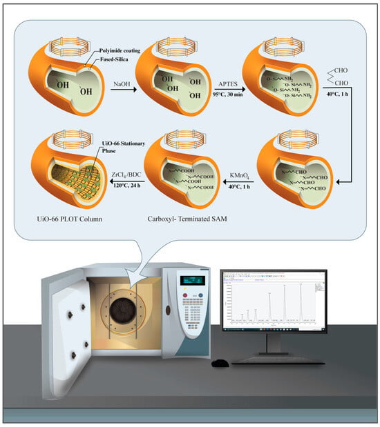 Figure 9 schematically summarizes the preparation of UiO-66-bonded PLOT columns. The COOH-terminated fused-silica capillaries were prepared as reported previously, but with slight modifications [26].