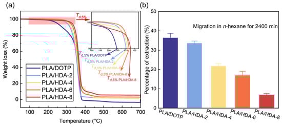 2.5. Thermal Stability and Migration Resistance of Plasticized PLA