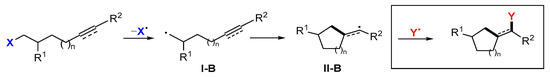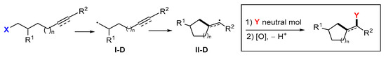 Radical cyclization followed by the 2nd functionalization with X or Y.