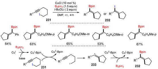 - Ke, S.; Liao, H.; Qin, H.; Wang, Y.; Li, Y. Access to benzocyclic boronates via light-promoted intramolecular arylborylation of alkenes. J. Org. Chem. 2023, 88, 6237–6246. [Google Scholar] [CrossRef] [PubMed]