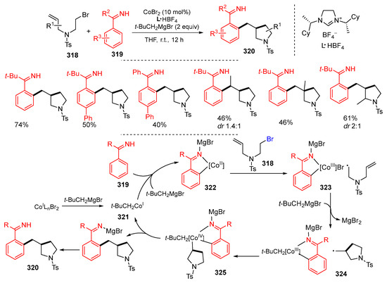 - Sun, Q.; Yoshikai, N. Cobalt-catalyzed tandem radical cyclization/C–C coupling initiated by directed C–H activation. Org. Lett. 2019, 21, 5238–5242. [Google Scholar] [CrossRef] [PubMed]