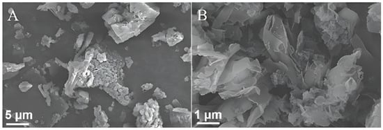 (A) SEM image of g-C3N4 and (B) SEM image of nano g-C3N4.