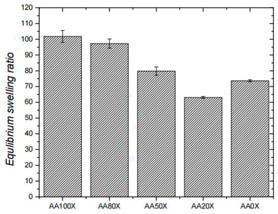 Equilibrium swelling ratio of pIPNs/magnetite composites [36].