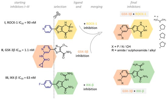 Figure 1. Design of novel ligands targeting ROCK-1, GSK-3β, and IKK-β kinases (* substituent).