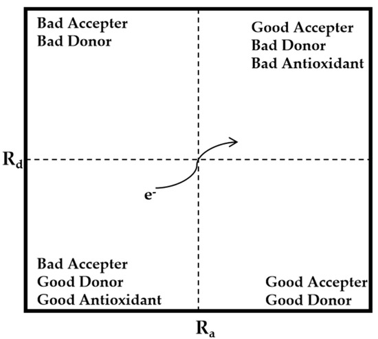 | ω+ | ω+ = (IP + 3EA)2/16(IP − EA) | ω− and ω+ reflect respectively the electron-donating and electron-accepting ability of antioxidants [111,112]. |